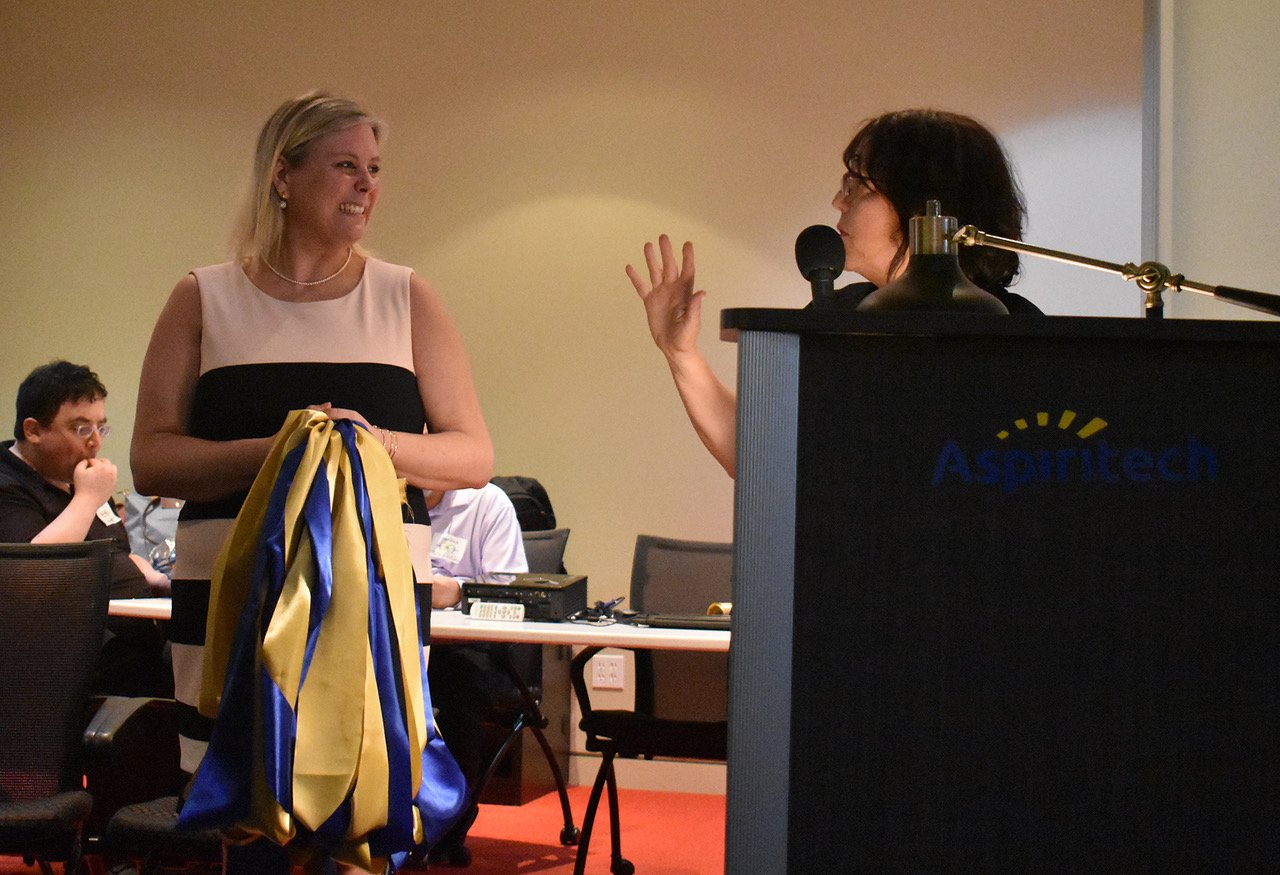 Outgoing Executive Director and co-founder Brenda Weitzberg presided. Brenda was joined at the podium by Ester Stein, Board Chair, Aspiritech Staff Members Jacob Bielski, Joe Goodman and Brian Tozzo; Mayor of Evanston Daniel Biss, CMO Brad Cohen, Outgoing CEO and Co-Founder Moshe Weitzberg, and the new CEO Tara May. While there were hundreds of people to thank, the speakers touched on some of the things that make Aspiritech’s business and community so unique.