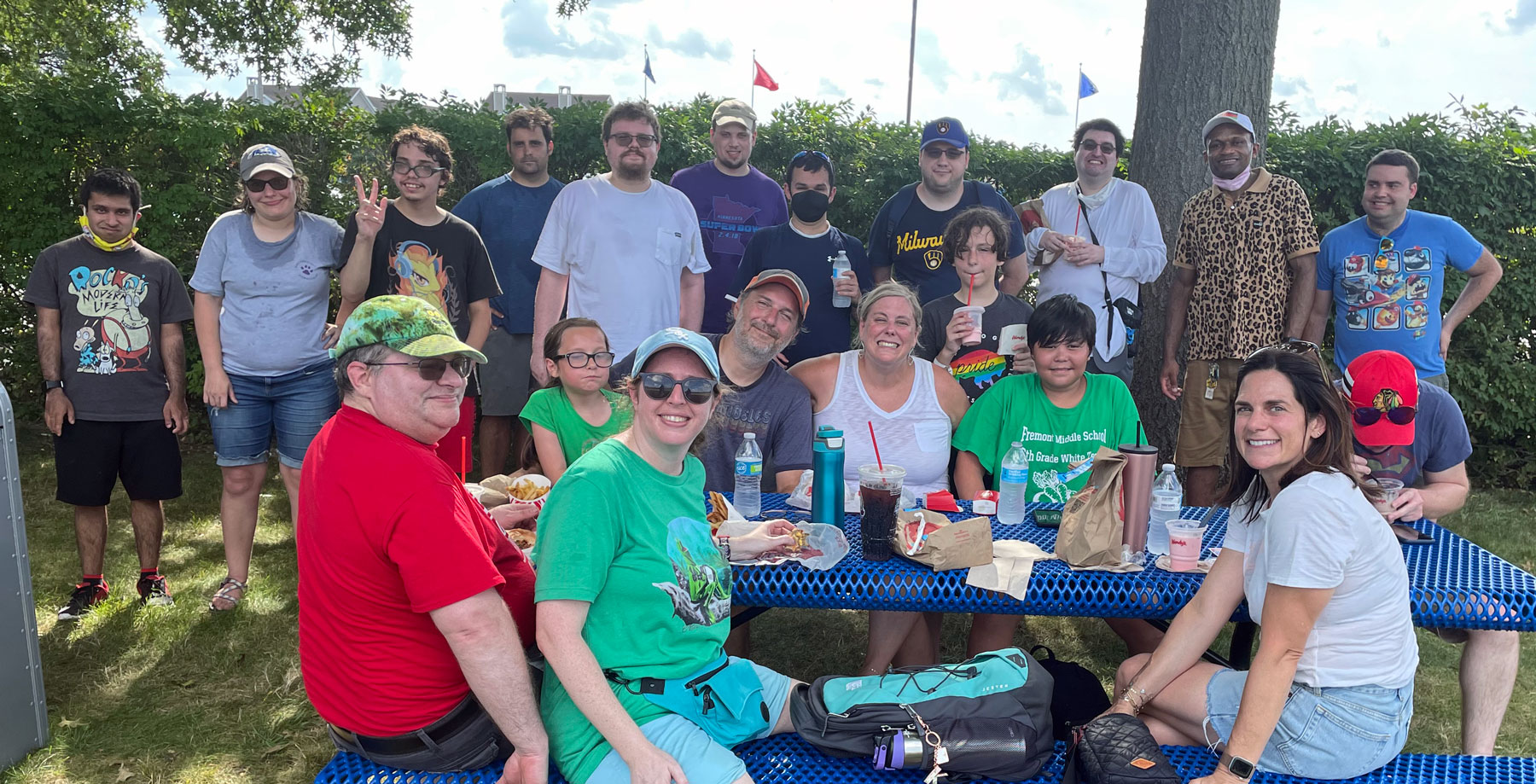 Some previous activities and outings include movie theaters, arcades, shopping malls, concerts, zoos, botanic gardens, corn mazes, bowling alleys, mini golf courses, escape rooms, trivia games, video games streams, improv workshops, holiday parties, and more.